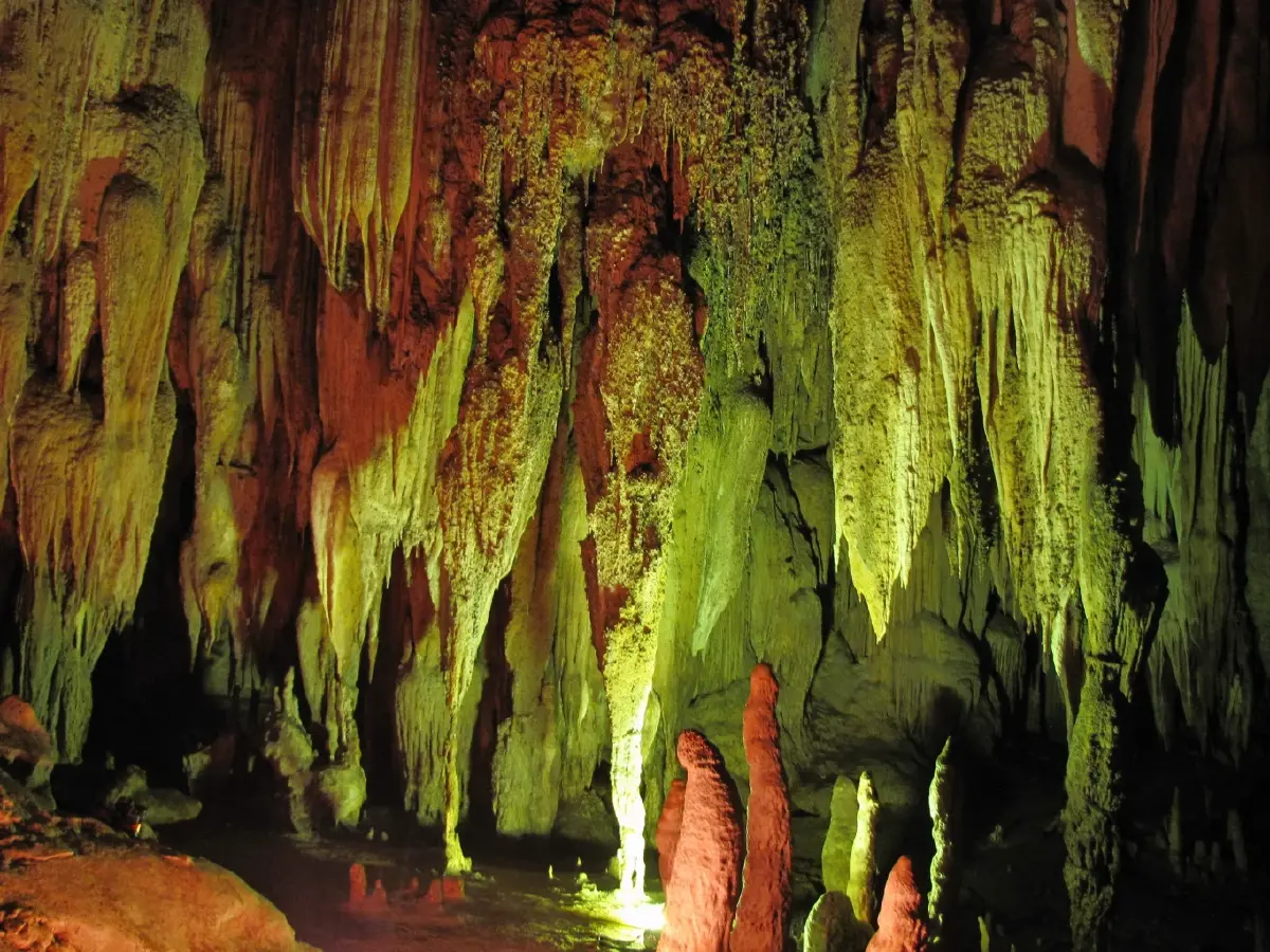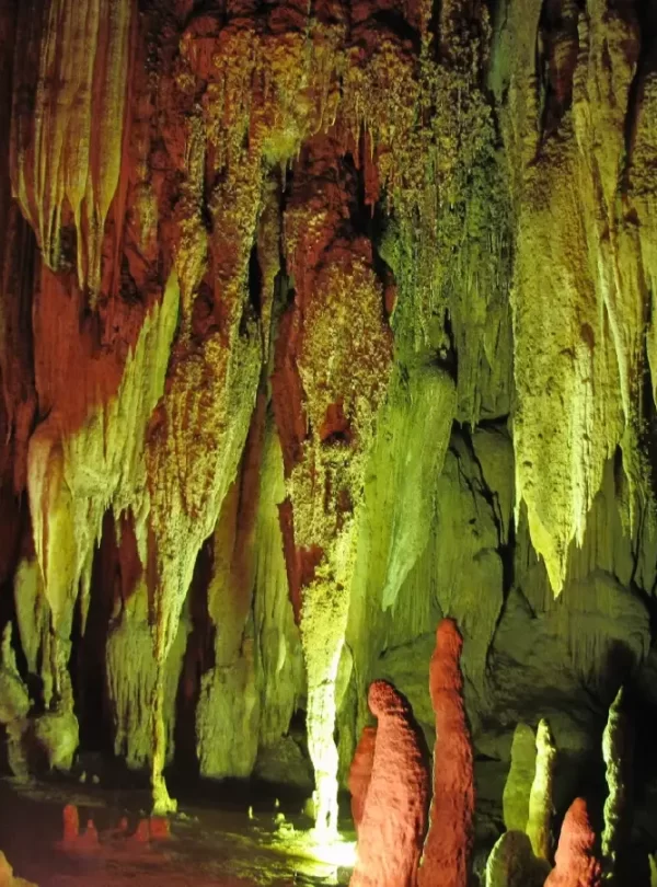 Features: This is one of the most beautiful limestone caves beneath the mountain. It has 13 chambers and a diverse and complete collection of stalactites and stalagmites, including white quartz and golden stalactite curtains.
